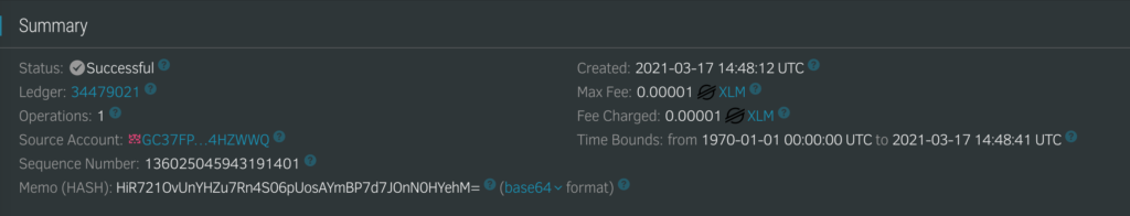 • Se si clicca sul parametro Source Account è possibile vedere tutti i parametri associati all’account emittente, tra cui home domain, in questo caso: Skillchain.